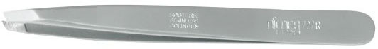Kvalitná zalomená pinzeta z nerezovej ocele. Profesionálna pinzeta s rovnou plôškou určená na precíznu úpravu obočia a bezpečné odstránenie nežiaducich chĺpkov. Vyrobená z odolnej nerezovej ocele, ktorá zaručuje dlhú životnosť, jednoduchú údržbu a maximálnu hygienu. Ergonomický tvar umožňuje pohodlné a presné uchopenie každého chĺpku bez námahy.