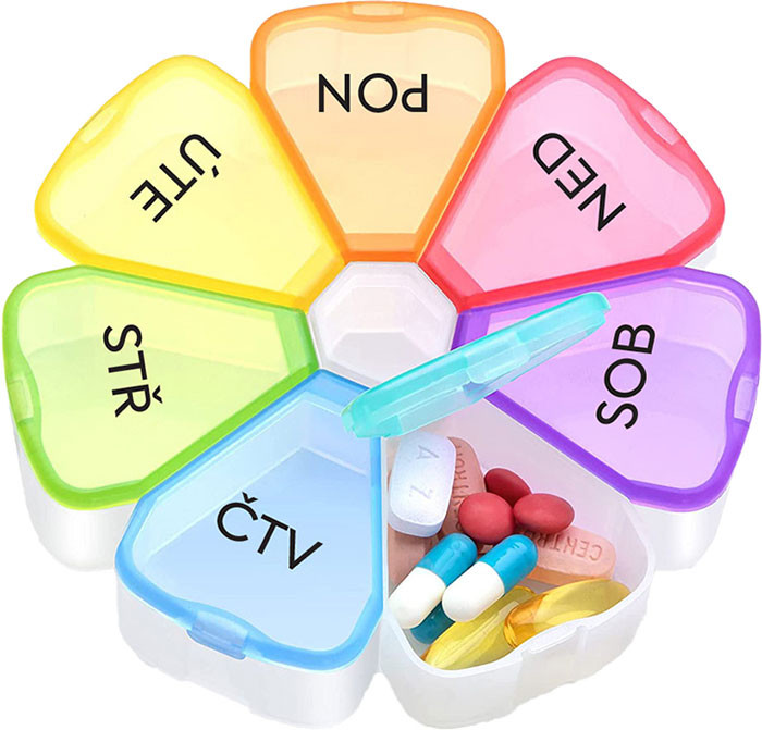 Do jednotlivých priehradiek rozdeľte lieky podľa dní v týždni. Každý deň použite príslušnú priehradku podľa aktuálneho dňa. Dávkovač je vhodný na každodenné používanie doma aj na cestách. - Hodnotenie (0)