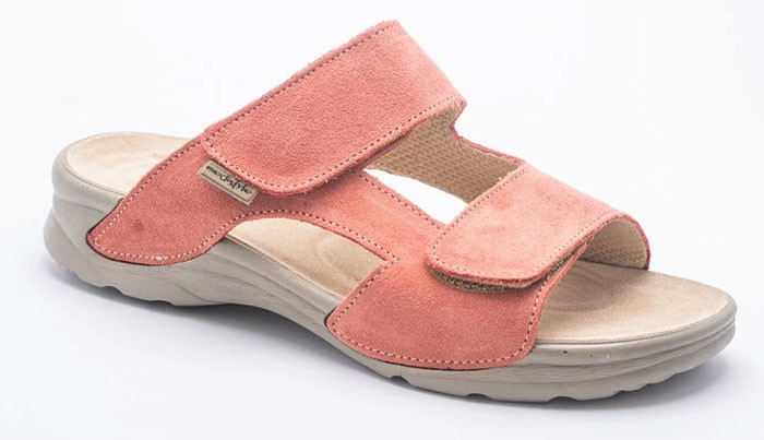 Stielka zabezpečuje vhodné hygienické podmienky a prispieva k komfortu pri dlhodobom nosení. Vrchné pásky so suchým zipsom umožňujú jednoduché prispôsobenie šírky nohy, čím sa zabezpečí pohodlie po celý deň. Pantofle Mirka spájajú komfort, stabilitu a praktické vlastnosti, čo z nich robí ideálnu voľbu na každodenné nosenie – do práce aj na voľný čas."