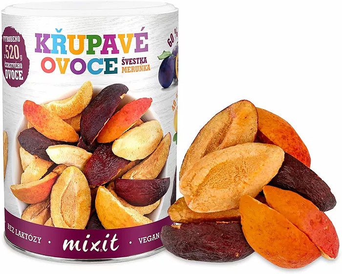 Zloženie: Lyofilizované ovocie (slivka 60 % a marhuľa 40 %)