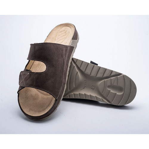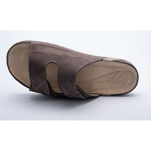Vrchná časť obuvi je vybavená dvomi páskami so suchým zipsom, ktoré umožňujú jednoduché prispôsobenie šírky nohy a zabezpečujú pohodlie aj stabilitu počas celého dňa. Stabilná podrážka prináša bezpečný krok, a pantofle Vilém tak kombinujú praktickosť, komfort a štýl, čo z nich robí ideálnu voľbu pre mužov hľadajúcich pohodlnú a funkčnú obuv.